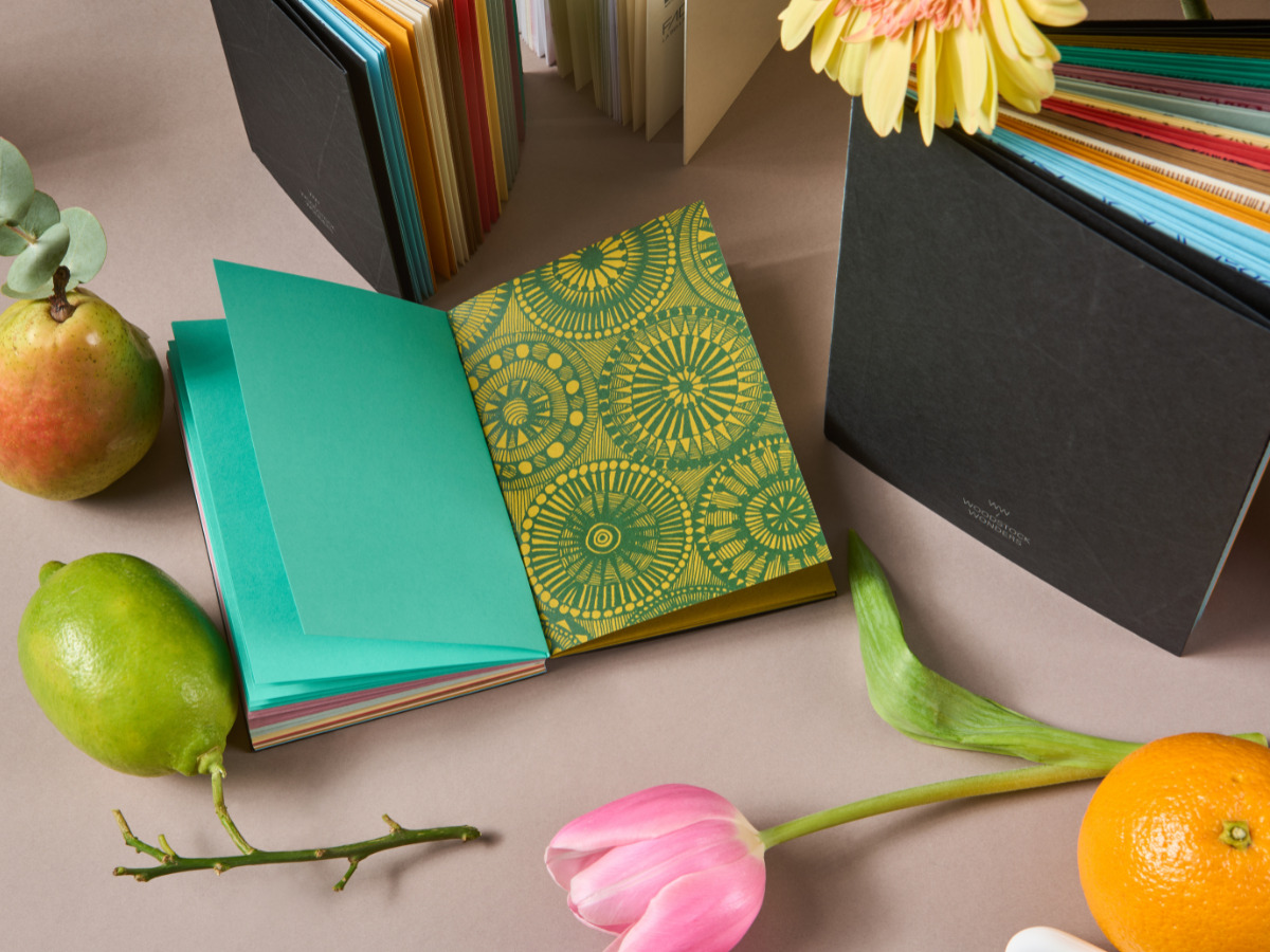 Wonder takes shape through the variety of papers inside the Woodstock notebook. Designed for all kinds of writing, it opens flat at 180° and is available in A4, A5 and A6 formats. The exposed spine binding reveals the coloured pages inside and the decorative patterns printed on the first sheet of each section. Available individually or in sets of three, the new Woodstock Bouquet notebooks are Singer stitched, each featuring a different paper in terms of whiteness, fibre composition and surface finish. Every notebook offers a new tactile and visual experience, inviting you to explore different writing and drawing sensations.