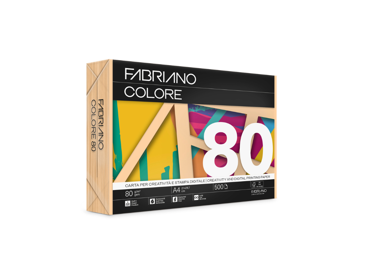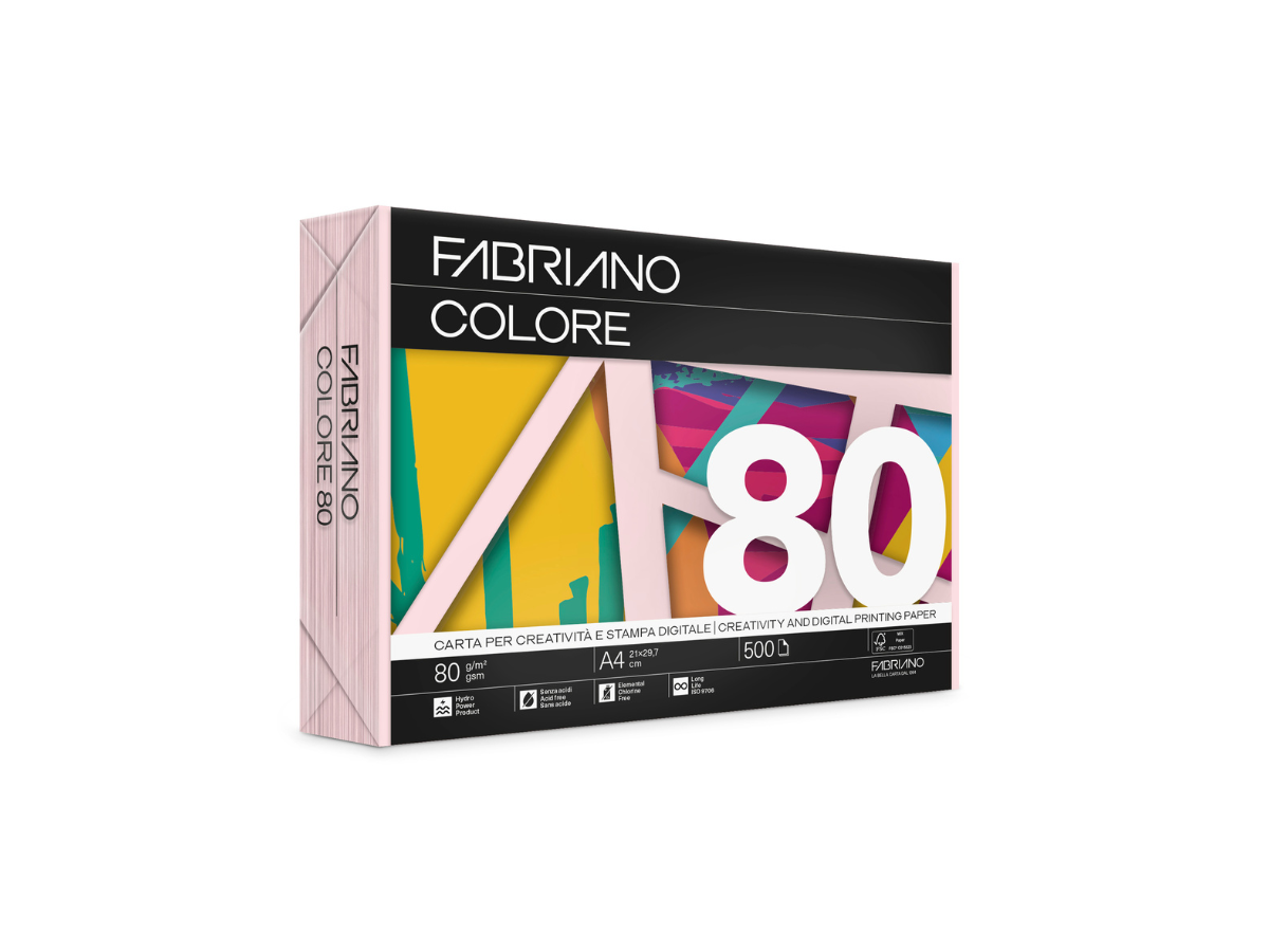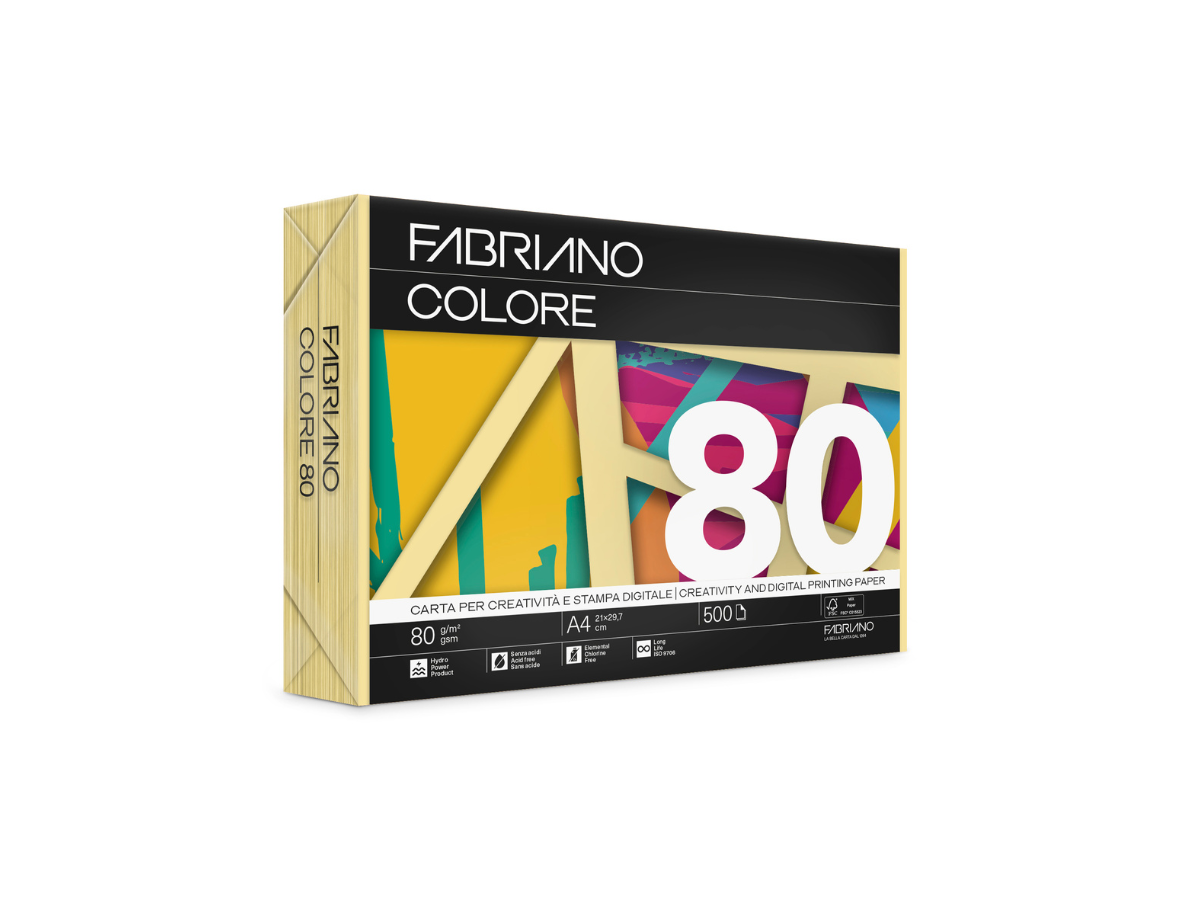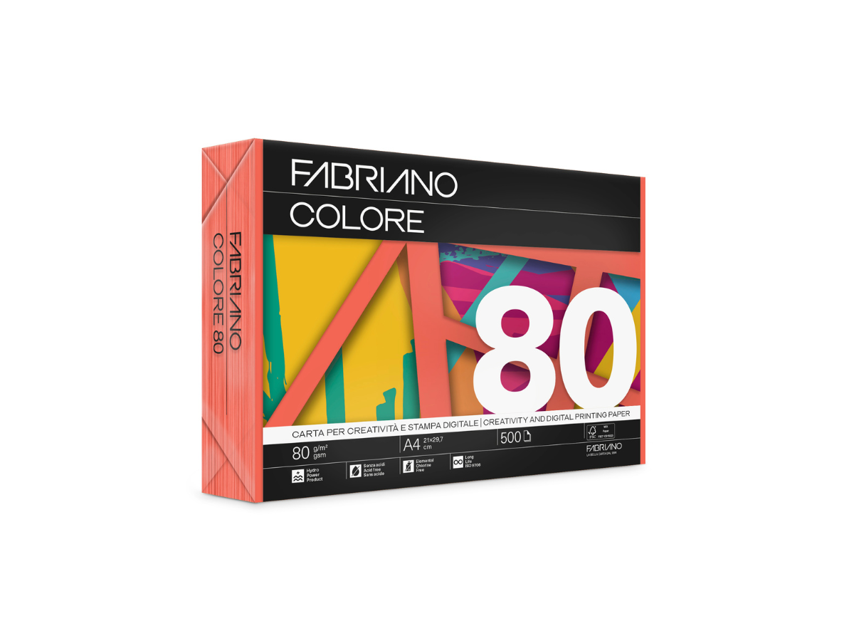 Con Fabriano Colore A4/A3, cada proyecto cobra vida. Un papel de color versátil y de alta calidad, tintado tanto en la masa como en la superficie, ideal para la impresión láser e inkjet, pero también perfecto para dibujos, collage y actividades creativas.