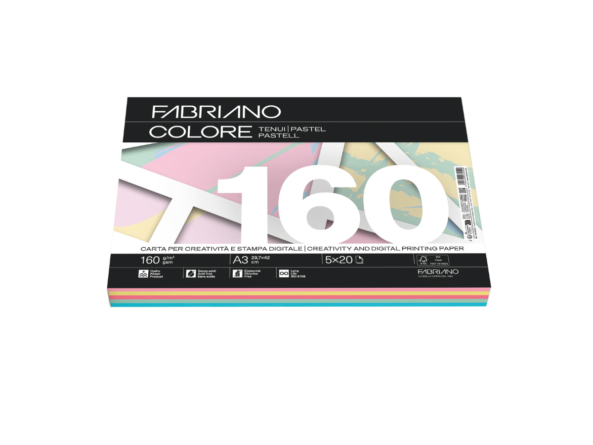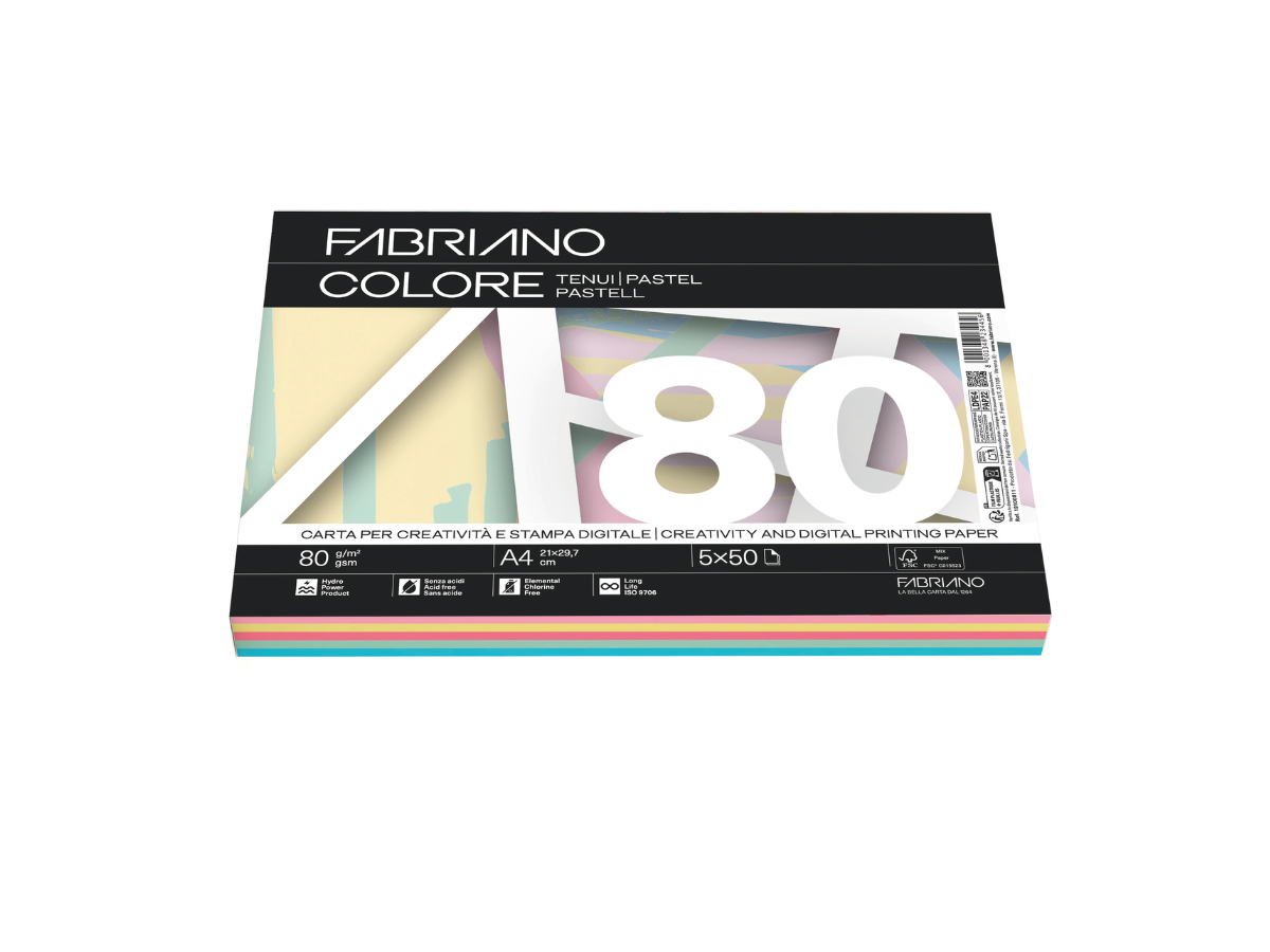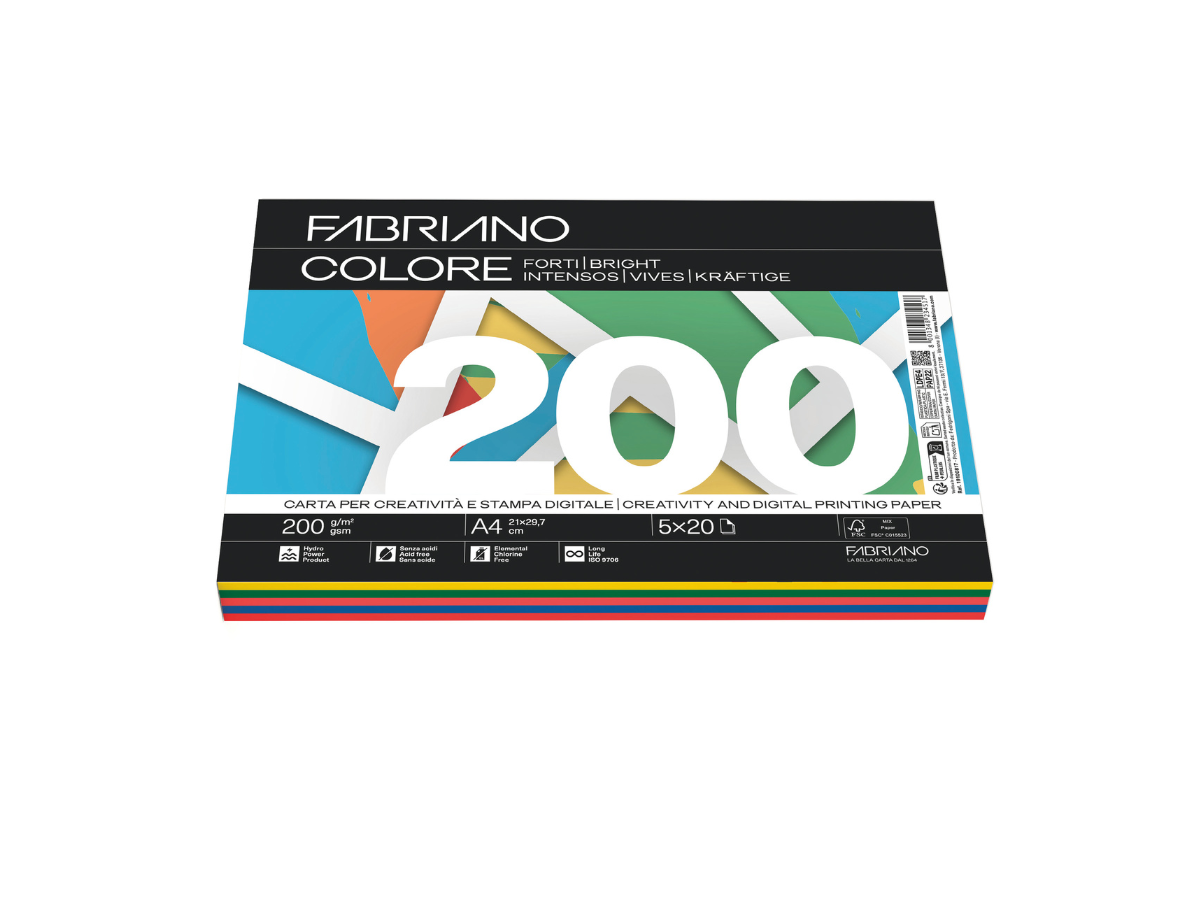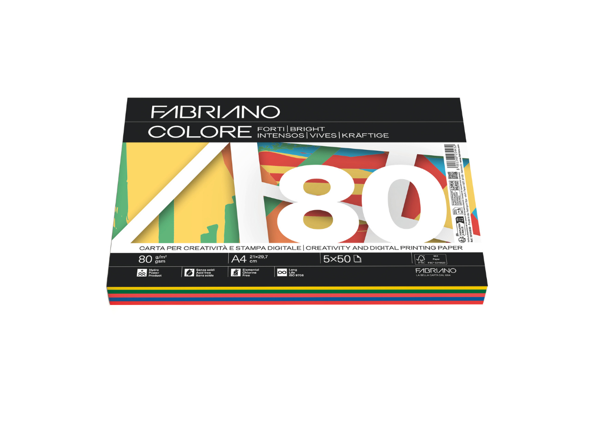 Con Fabriano Colore Mix, la creatividad se multiplica. Cada paquete contiene 5 colores surtidos, disponibles en versiones SUAVES y INTENSOS, para crear combinaciones siempre nuevas y originales. Un papel de colores versátil y de alta calidad, ideal para impresión láser e inkjet, pero también perfecto para dibujo, collage y proyectos creativos. Disponible en gramajes de 80, 160 y 200 g/m², se adapta a todas las necesidades, desde actividades escolares hasta creaciones artísticas. Fabricado con 100 % de celulosa ECF (Elemental Chlorine Free), certificada FSC®, libre de ácidos y con reserva alcalina para una mayor durabilidad (ISO 9706).